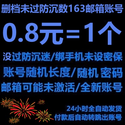 全新账号售后删档(随机密码)----单独佣有/全新163邮箱/邮箱可能未激活/已防沉迷163账号/账号长度随机/绑定手机/未设密保/适合游戏